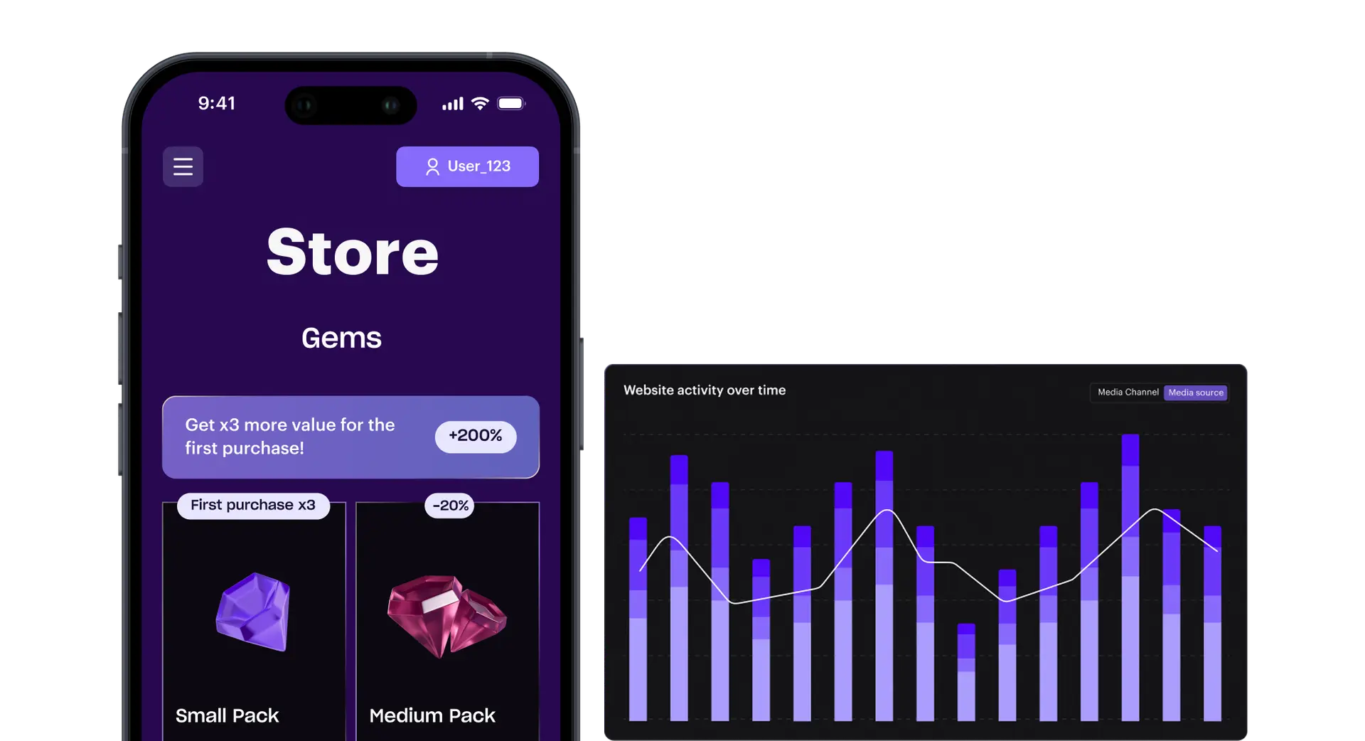 이제 유저가 앱 설치 후 웹샵에서 구매하고 다시 앱에서 활동해도, 모든 과정이 하나의 유저 여정으로 집계됩니다. LTV와 ROAS를 보다 정밀하게 계산할 수 있음은 물론입니다.